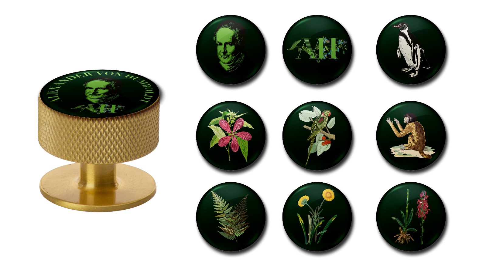 Friedrich Wilhelm Heinrich Alexander von Humboldt war ein deutscher Forschungsreisender mit einem weit über Europa hinausreichenden Wirkungsfeld. In seinem über einen Zeitraum von mehr als sieben Jahrzehnten entstandenen Gesamtwerk schuf er einen neuen Wissens- und Reflexionsstand über die Welt und wurde zum Mitbegründer der Geographie als empirischer Wissenschaft. Inspiriert von Alexanders Zeichnungen, entwickelten wir eine ausdrucksstarke Kollektion, floral und animalisch, farbenfroh auf elegantem Dunkelgrün mit feiner Typografie.