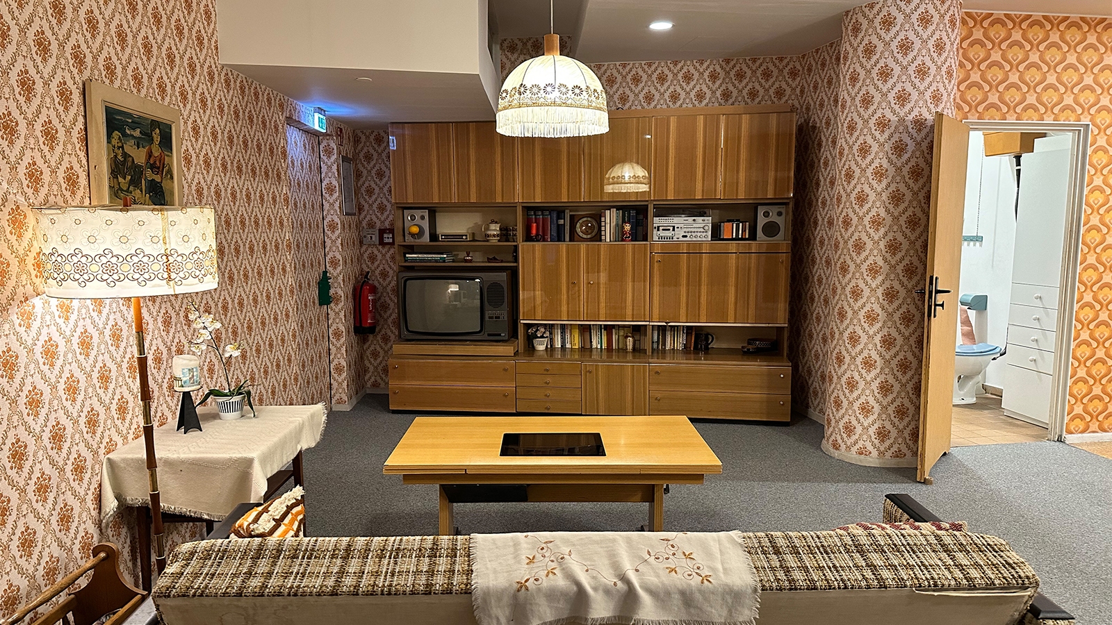 Private life in the GDR is portrayed in a completely and faithfully furnished WBS 70 prefabricated flat. A children’s and teenagers‘ room, a bedroom, a living room, a kitchen, a bathroom, a Stasi listening room and a garage can be freely explored and experienced.