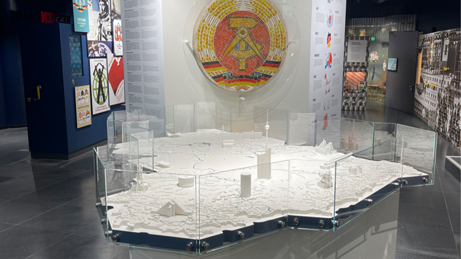 December 2022: One of the largest aquariums in the world – the Berlin AquaDom – fell apart and huge amounts of salt water poured into the building; the DDR Museum was also badly affected. During the three-month renovation, the museum was reorganised and given a new exhibition design. Now on display are an original six-metre-long section of the Berlin Wall, a large topographical model of the GDR with the most important buildings and a model of the Palace of the Republic on a scale of 1:125,000.
