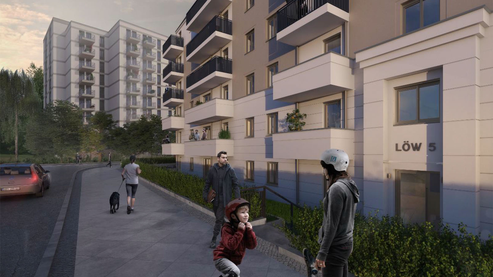 In Berlin-Friedrichfelde, the challenge was to create 166 compact rental apartments in the face of rising construction costs. This was achieved with ultimately a good 10,000 sqm of living space between 2017 and 2020, including a large courtyard garden and underground parking.