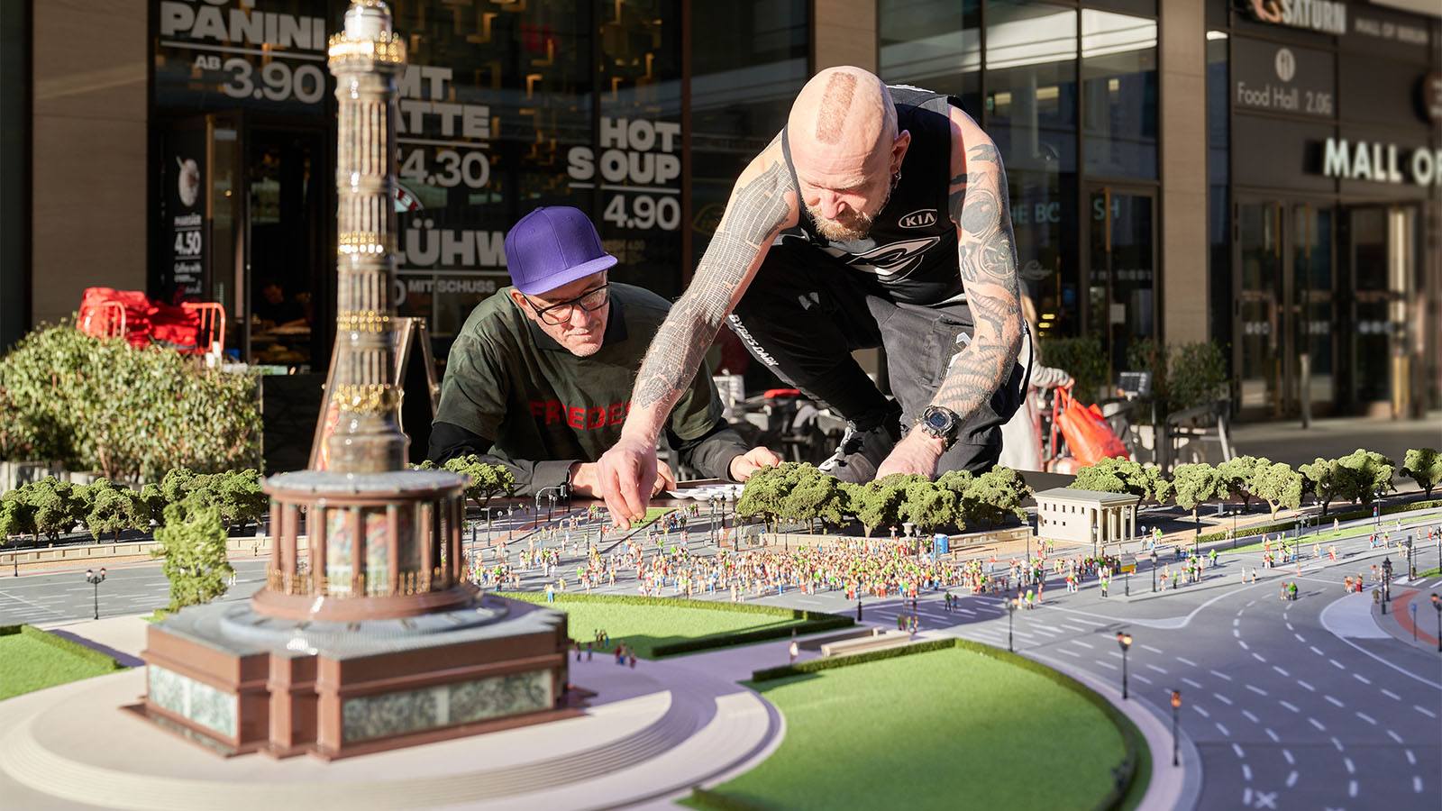 Rave The Planet is a non-profit private limited company which promotes electronic dance music and club culture. Located at the Mall of Berlin to encourage donations for the parade planned in 2021, a model scaled 1:87 was built of the street “Straße des 17. Juni” stretching from Ernst-Reuter-Platz to the Brandenburg Gate, via Berlin’s Victory Column – the Love Parade’s route from 1996 until 2006. A workshop and donation shop can be found at each end of the model.