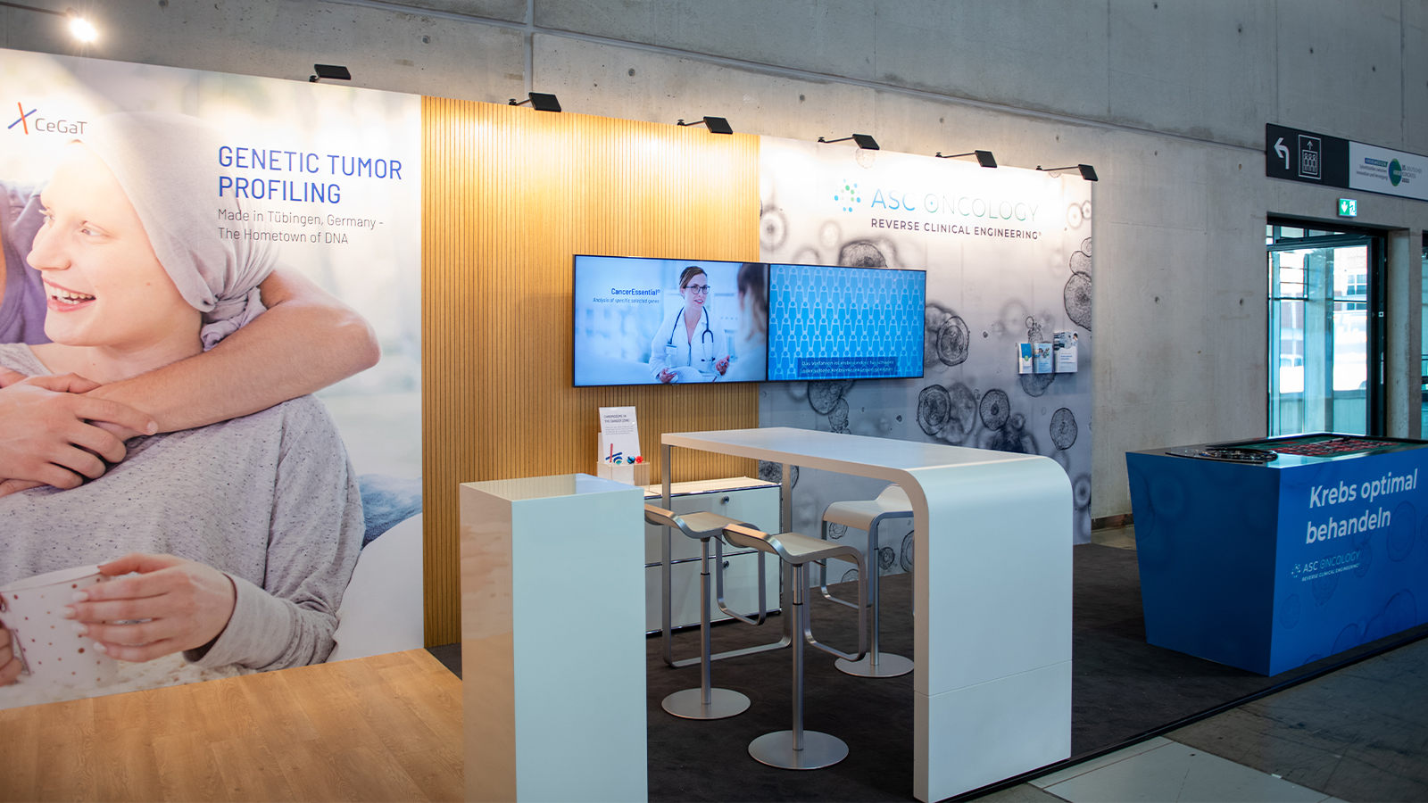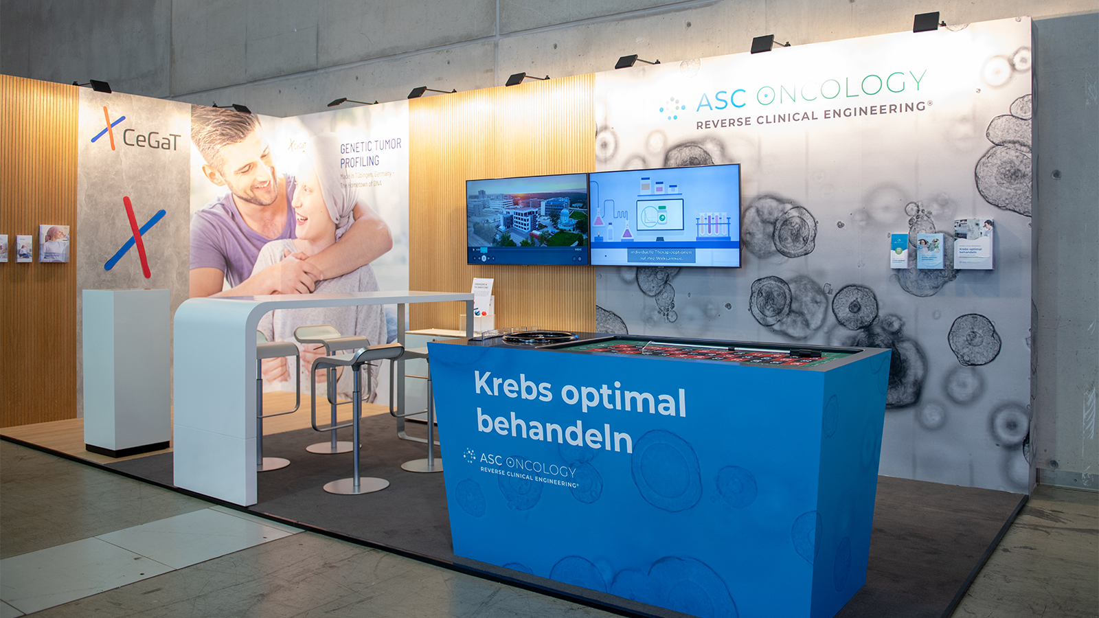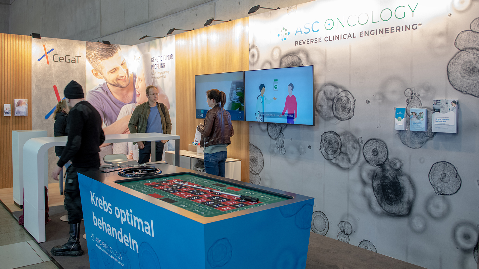 Krebs. Vor Behandlungsbeginn die Optionen testen. Im Labor. Ohne Nebenwirkungen. Mit dem Reverse Clinical Engineering hat ASC Oncology ein ergänzendes Testverfahren entwickelt, mit dem überprüft werden kann, welche medikamentösen Krebstherapien beim individuellen Patienten mit malignem soliden Tumor mit hoher Wahrscheinlichkeit wirken und welche nicht. Der Auftritt des neuen Verfahrens, auf dem Deutschen Krebskongress 2022 und 2024 in Berlin, wurde mit spielerischen Mitteln inszeniert, um die Komplexität möglichst einfach und verständlich vermitteln zu können. Das Konzept der Präsentation wurde zum vollen Erfolg und wird nun für weitere Markenauftritte weiter entwickelt.