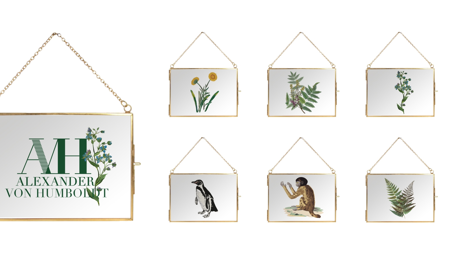 Friedrich Wilhelm Heinrich Alexander von Humboldt war ein deutscher Forschungsreisender mit einem weit über Europa hinausreichenden Wirkungsfeld. In seinem über einen Zeitraum von mehr als sieben Jahrzehnten entstandenen Gesamtwerk schuf er einen neuen Wissens- und Reflexionsstand über die Welt und wurde zum Mitbegründer der Geographie als empirischer Wissenschaft. Inspiriert von Alexanders Zeichnungen, entwickelten wir eine ausdrucksstarke Kollektion, floral und animalisch, farbenfroh auf elegantem Dunkelgrün mit feiner Typografie.