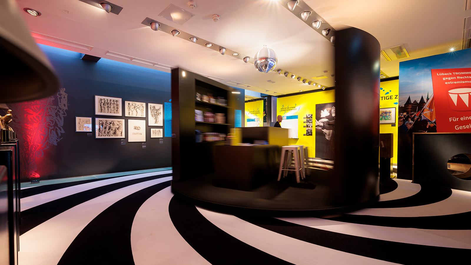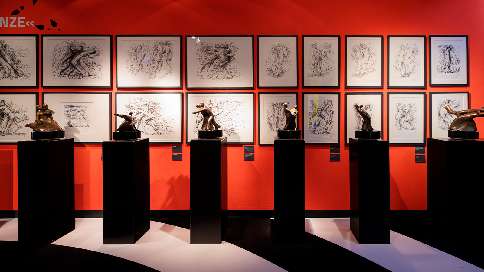 Die spezielle Magie des Tanzes steht im Mittelpunkt der Ausstellung »Grass Tanzbar«, die von Ende März 2024 bis Januar 2025 zu erleben ist. In nahezu jedem veröffentlichten literarischen Werk von Günter Grass wird getanzt. Die Ausstellung bringt Plastiken, Grafiken und Texte in Bewegung und lädt zum Mitmachen ein. Alles scheint sich zu bewegen, manches dreht sich und Mittelpunkt des Ganzen ist eine Bar die unaufhörlich ihre Kreise zieht.