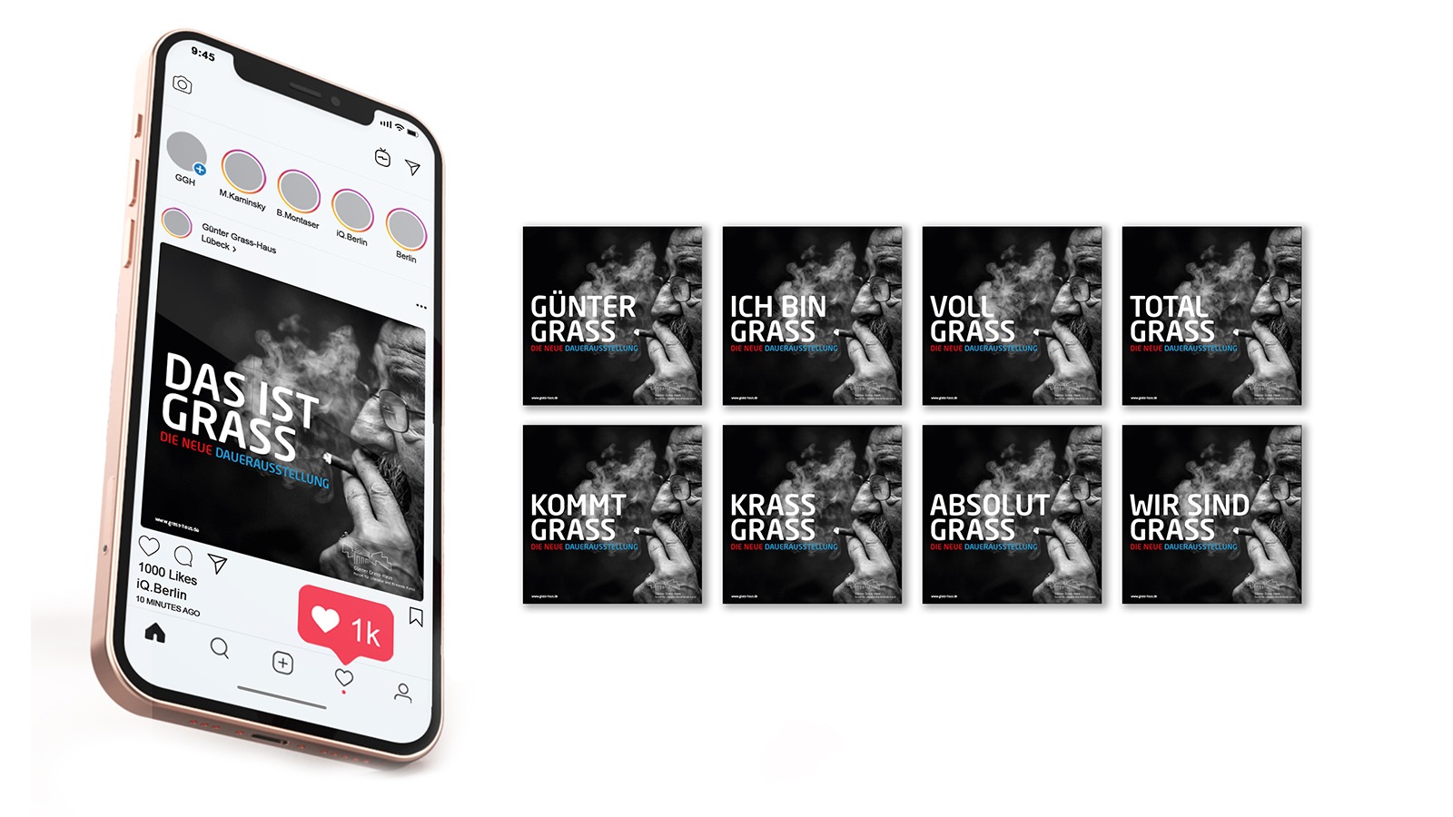 The campaign for the new permanent exhibition of the Günter Grass House in Lübeck arouses curiosity about the life and work of the German Nobel Prize winner. The impressive photo by Thorsten Wulff shows Günter Grass smoking a cigarillo. Black and white and with clear typography send a clear message.
