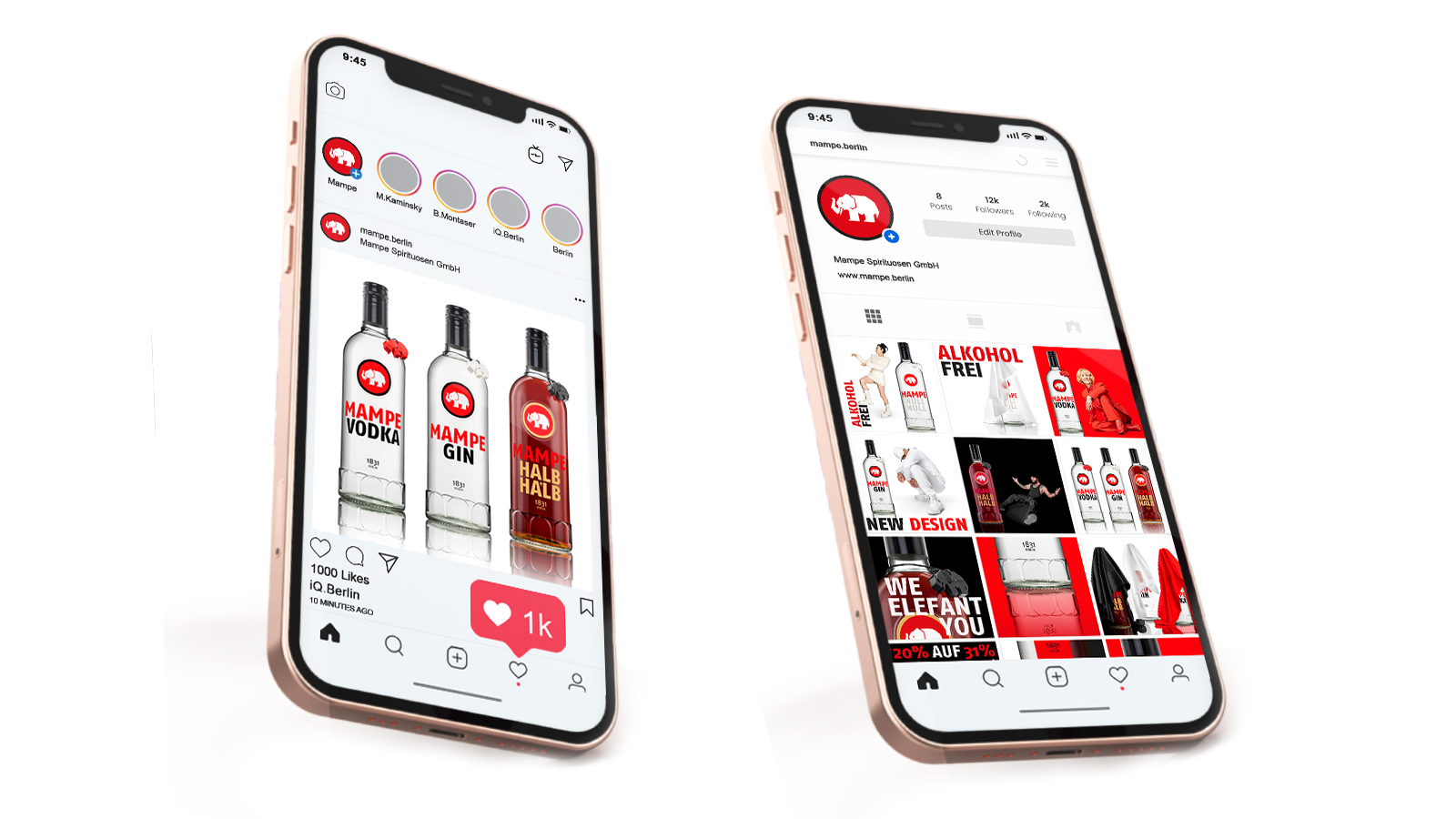 For the market launch of the new bottle design, each product has its own colour scheme and character. The claim for Mampe Vodka, Mampe Gin and Mampe Halb+Halb makes it immediately clear: a striking new design, the taste is as delicious as it has been for years. With one difference: Mampe Null Null – this is a new innovative, alcohol- and sugar-free drink as an alternative to gin. Mampe Pride Vodka is introduced seasonally with a bright design, especially for the colourful pride season.