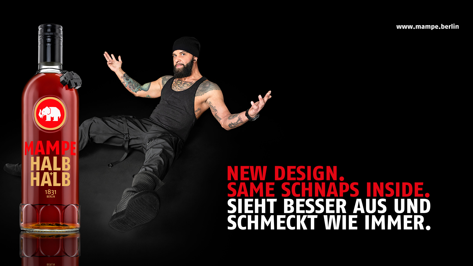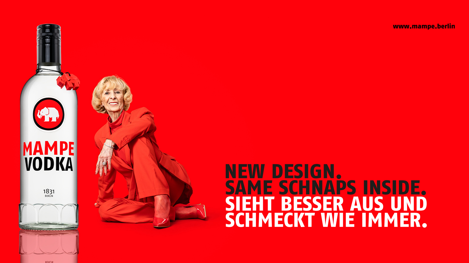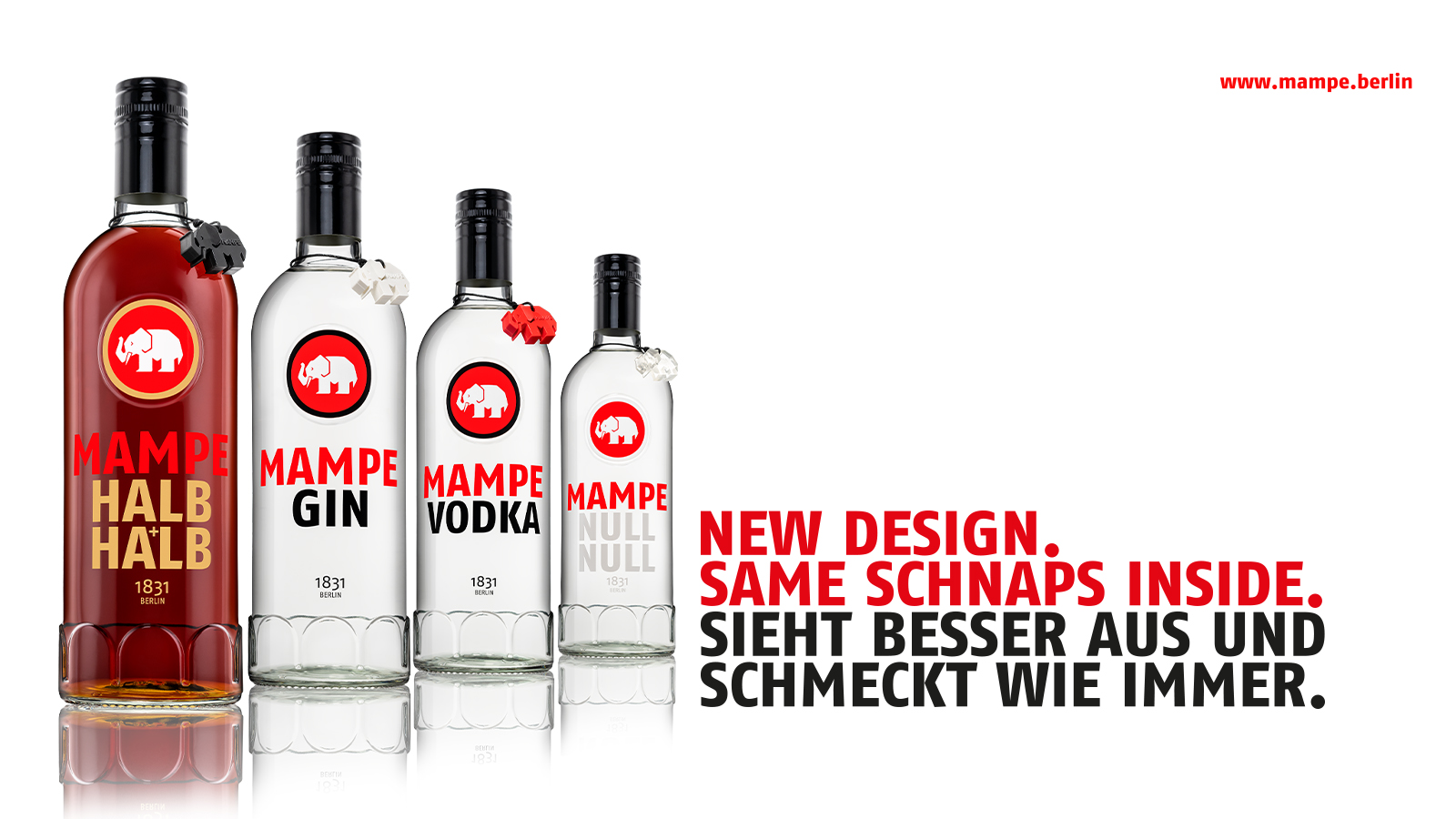 Zur Markteinführung des neuen Flaschen-Designs wird jedem Produkt eine eigene Farbwelt und ein eigener Character zur Seite gestellt. Der Claim stellt beim Mampe Vodka, Mampe Gin und Mampe Halb+Halb sofort klar: markantes neues Design, der Geschmack ist so lecker wie seit Jahren gewohnt. Mit einem Unterschied: Mampe Null Null – hier handelt es sich um ein neues innovatives, alkohol-und zuckerfreies Getränk als Alternative zum Gin. Saisonal zeitversetz wird Mampe Pride Vodka eingeführt, mit knallig Design, extra zur bunten und queeren CSD Saison.