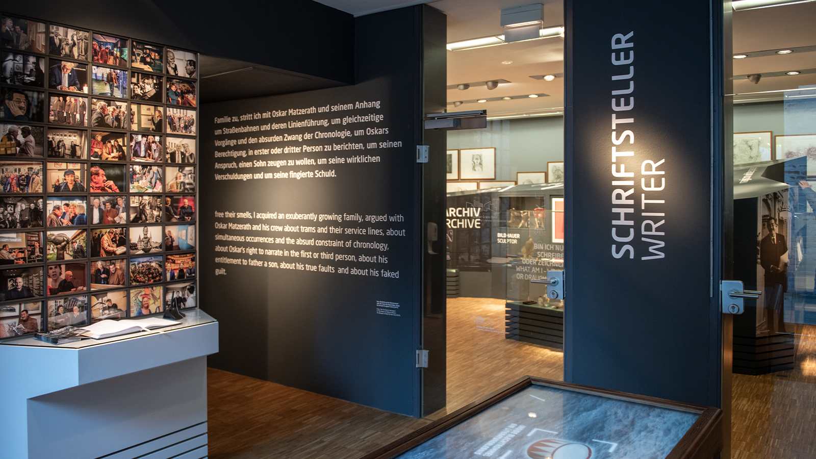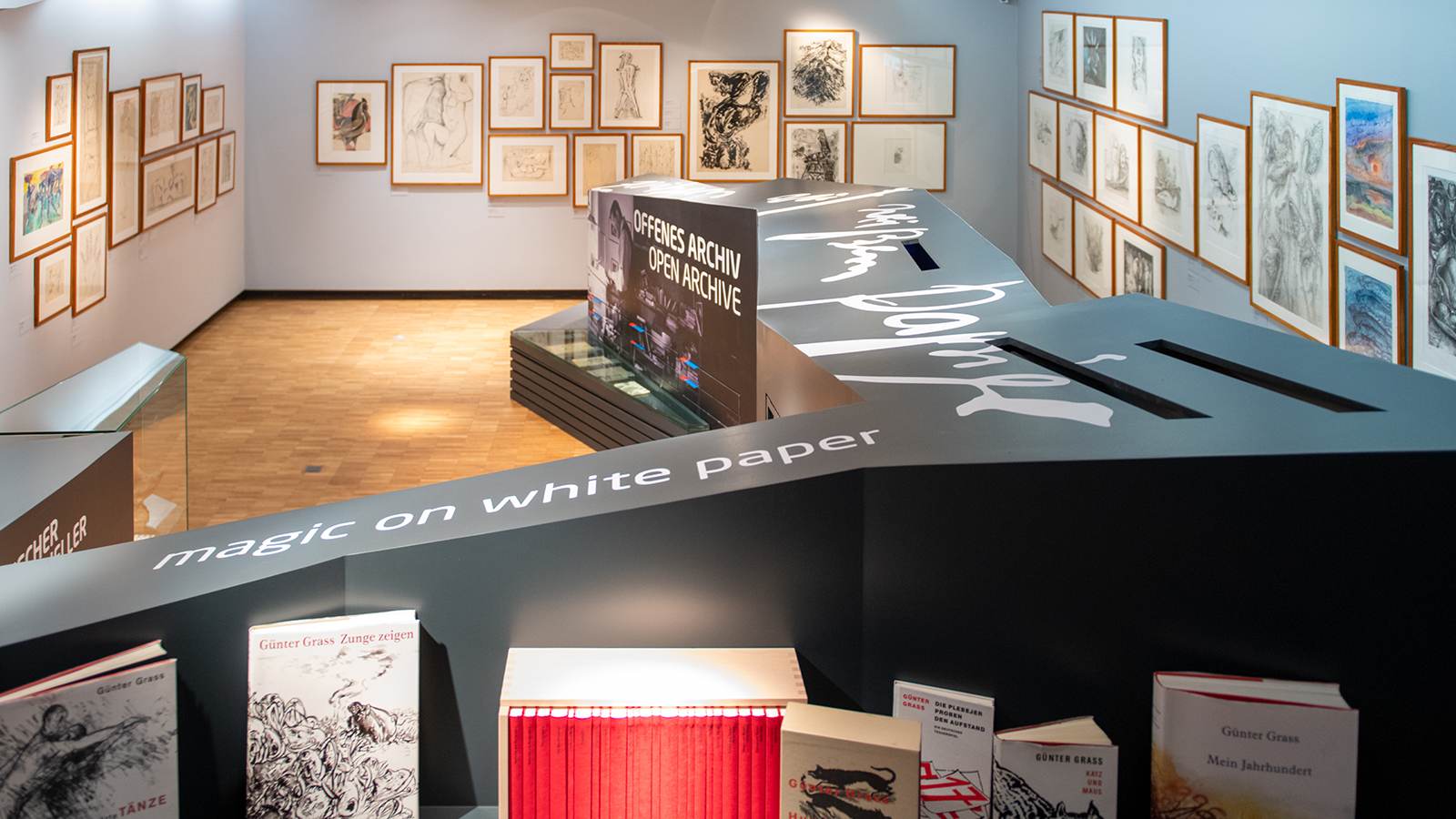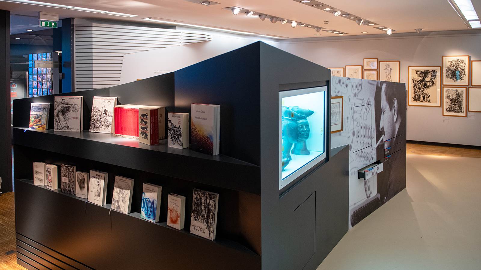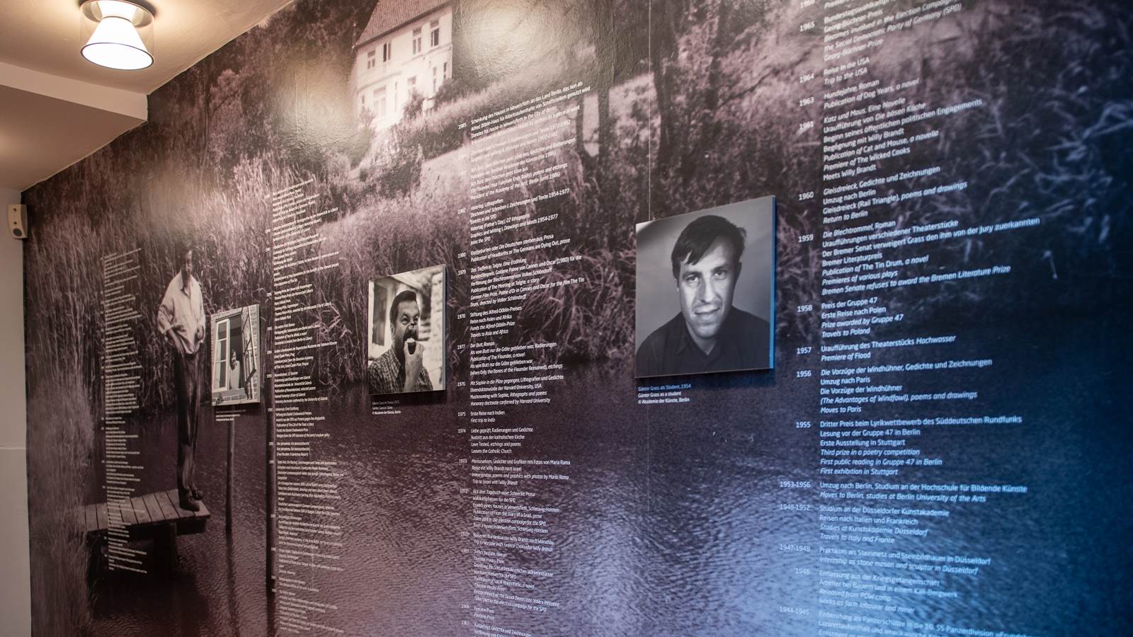 The content and aesthetics of the new permanent exhibition DAS IST GRASS creates a chronological tour through the life and work of Günter Grass. The individual buildings and gardens of the museum: hallway, sculpture courtyard, foyer, general shop, museum annex and museum garden grow together and take on a new, quality and timeless appearance.