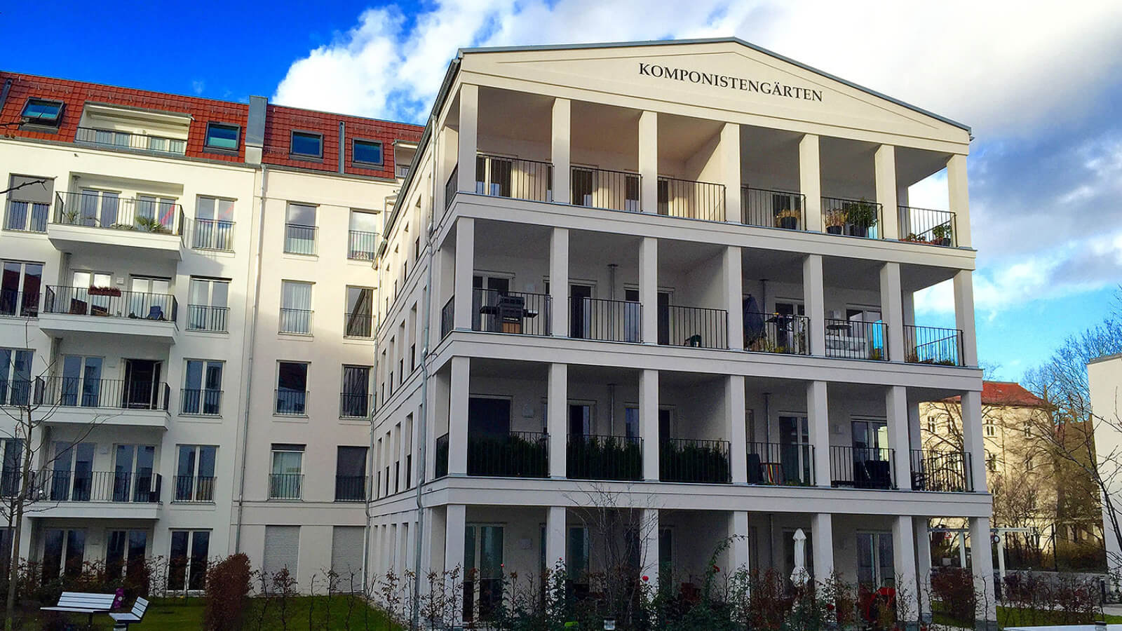 An der Grenze zu Prenzlauer Berg in Berlin-Weißensee waren wir die ersten, die den Mut für die Erstellung eines Eigentumswohnungsprojektes aufbrachten. Inmitten des so genannten Komponistenviertels entstanden 2012 bis 2015 93 Wohnungen mit insgesamt gut 9.000 qm Wohnfläche in 6 Gebäuden im modernen Klassizismus.